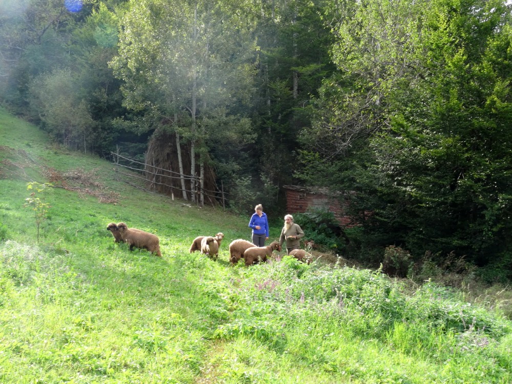 Kosmovac bereiken we die dag niet. Op het pad zien we plots een man staan die modder verzamelt uit de pas ontstane plas water. Hij verwelkomt ons enthousiast en sleurt ons mee richting zijn hutje. Tegen Trem (1810 m) omhoog, de hoogste berg van Suva Planina, blijkt hij een flinke lap grond te bezitten. Binnen de houten omheining heeft hij een paar hutten. Uitgelaten laat hij alles zien en vertelt honderduit. We verstaan niet veel, want de beste man spreekt uitsluitend Servisch en Russisch. Na een poosje, als hij begrijpt dat we uit Nederland komen, blijkt dat het andere Nederlandse stel hem ook heeft ontmoet. Het ijs is helemaal gebroken. Of we ook een paar slikas willen nemen van hem en zijn hond Jack en zijn schapen. En of we blijven slapen, want in Kosmovac is toch niks. Neša is de naam, aangenaam. We kijken elkaar aan en aarzelen – maar niet lang. Natuurlijk blijven we!
